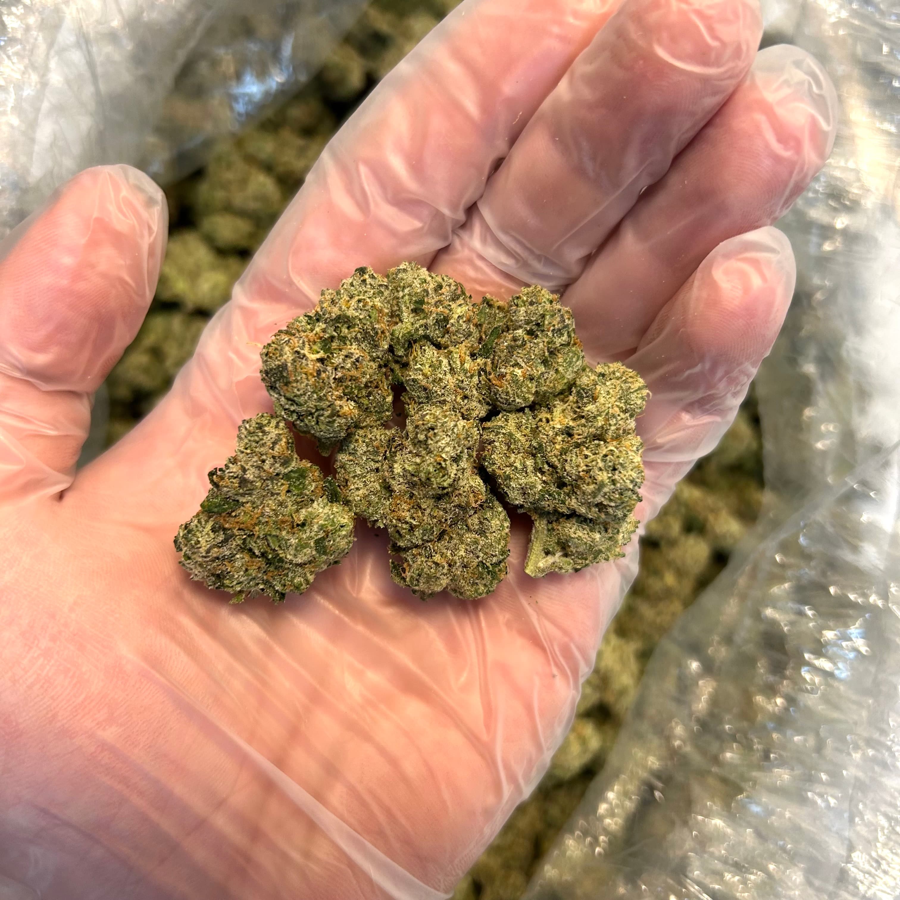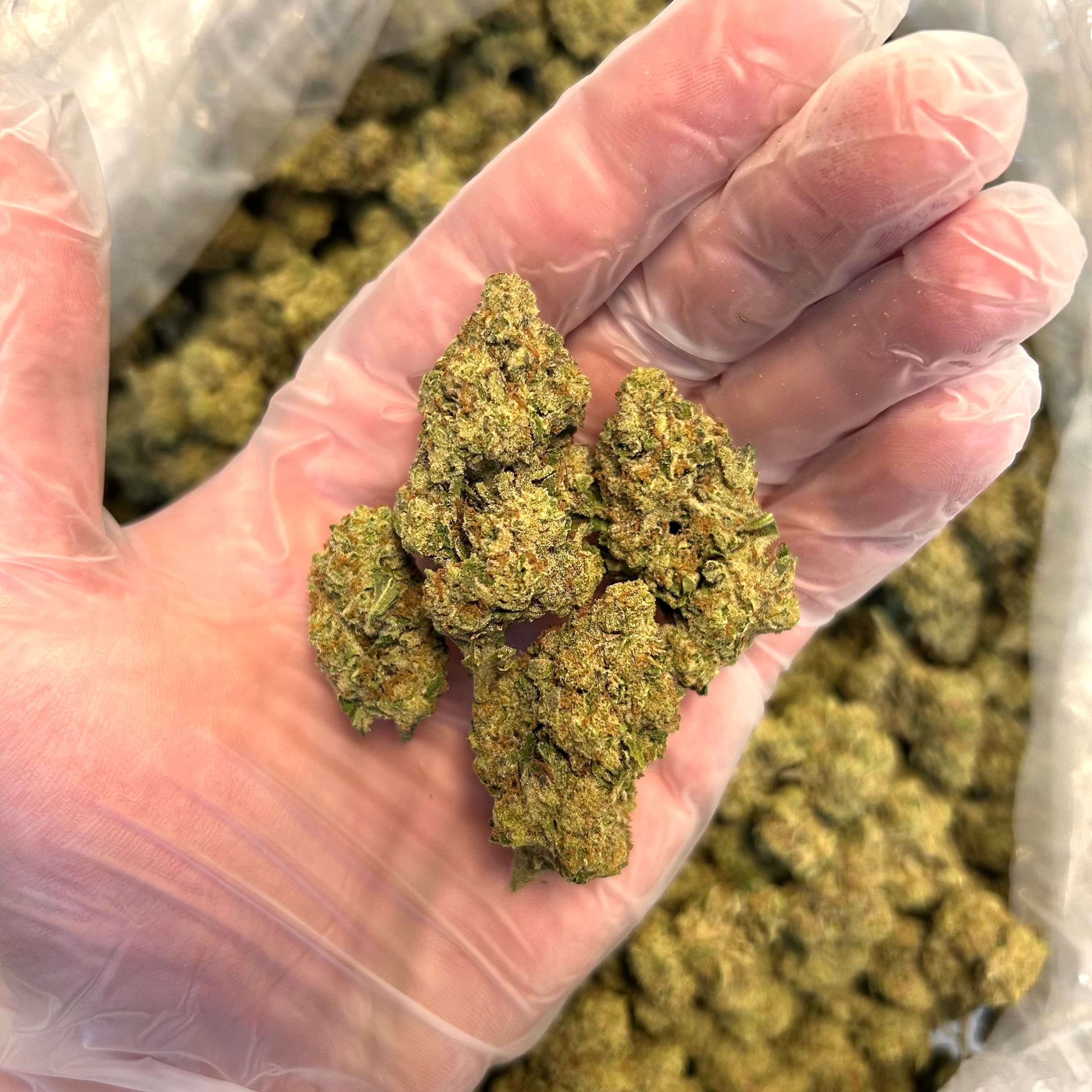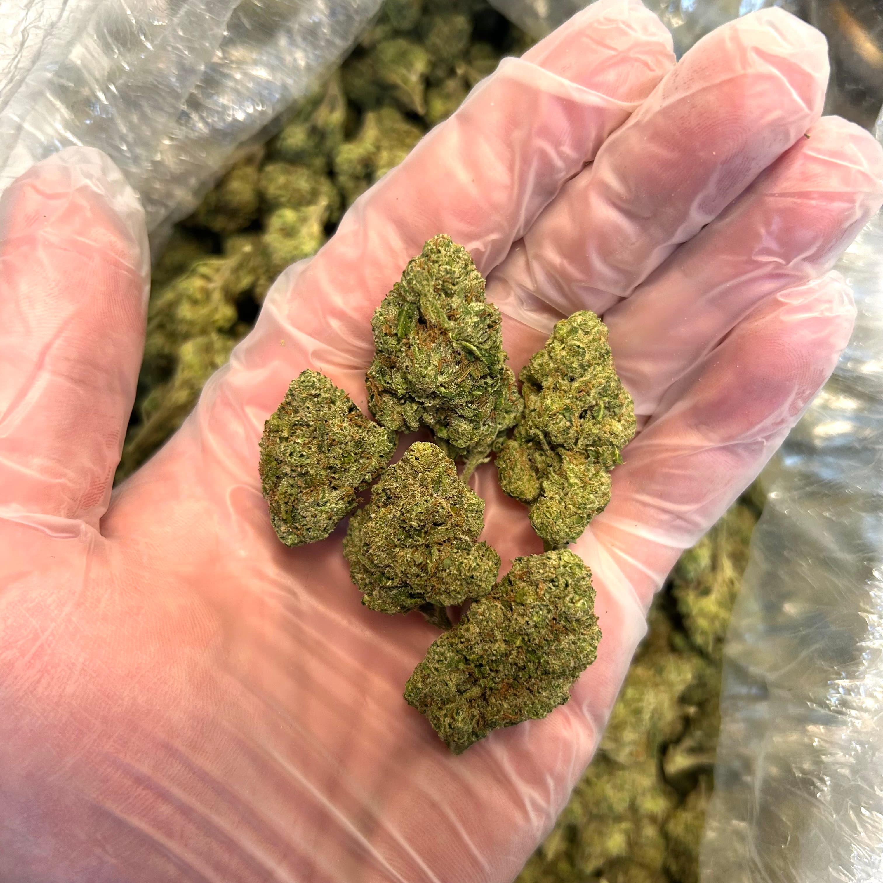 Sun grown greenhouse cannabis flower.